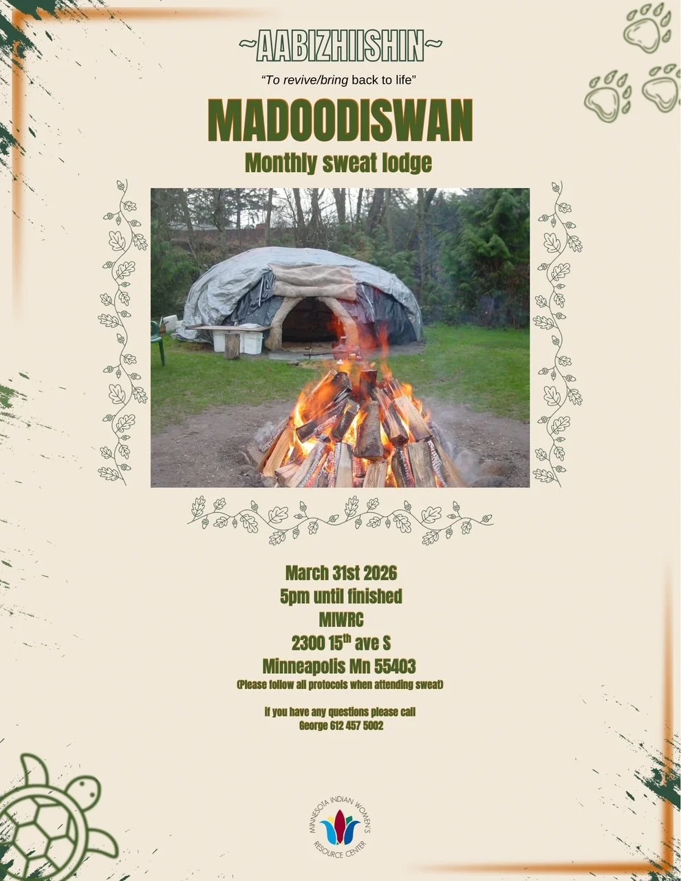 Call for an appointment or with questions: Ombaazhii 612-728-2037 or George 612-728-2031.